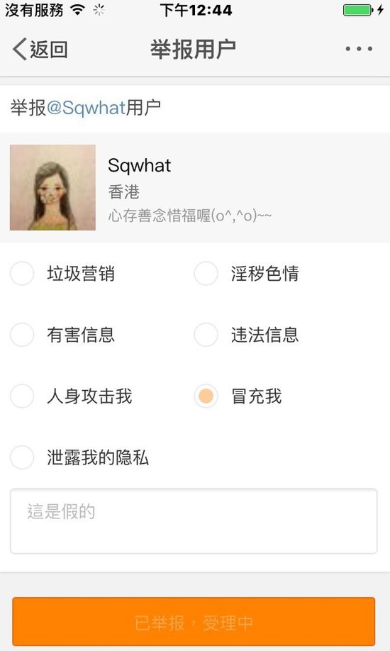 7月14日晚,舒淇通过微博举报冒充她小号的网友,并为自己点赞: “身为3c白痴的我,居然懂的举报人家了,我太佩服我自己了!”舒淇在微博中指名为“Sqwhat”的网友冒充她,并维护自身权益。